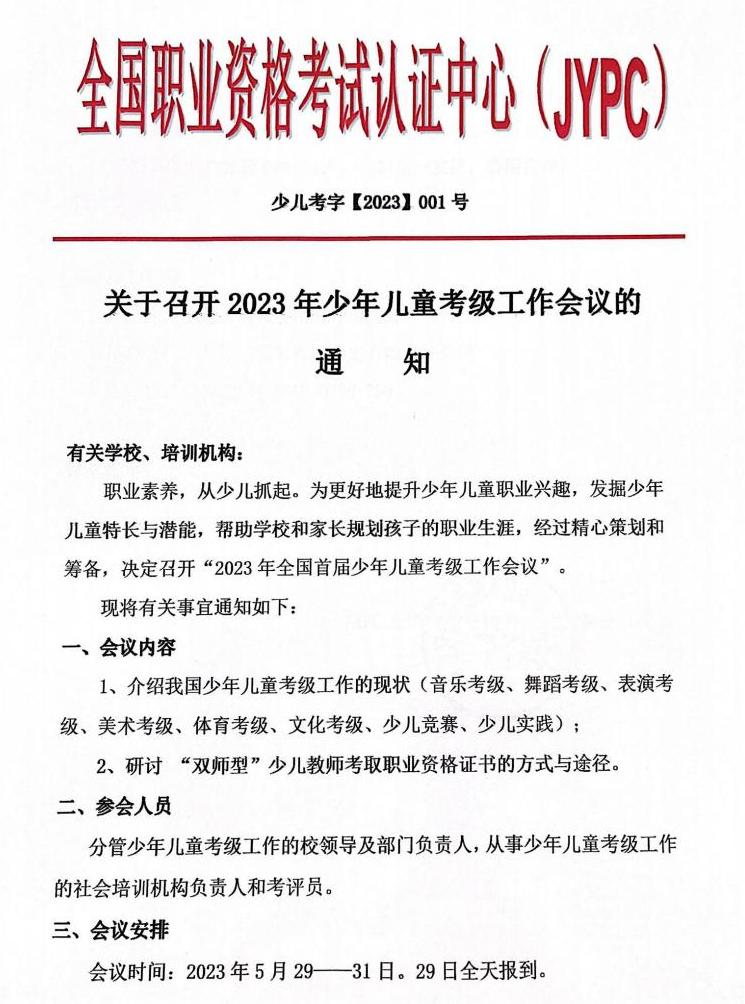 关于召开2023年少儿考级工作会议的通知