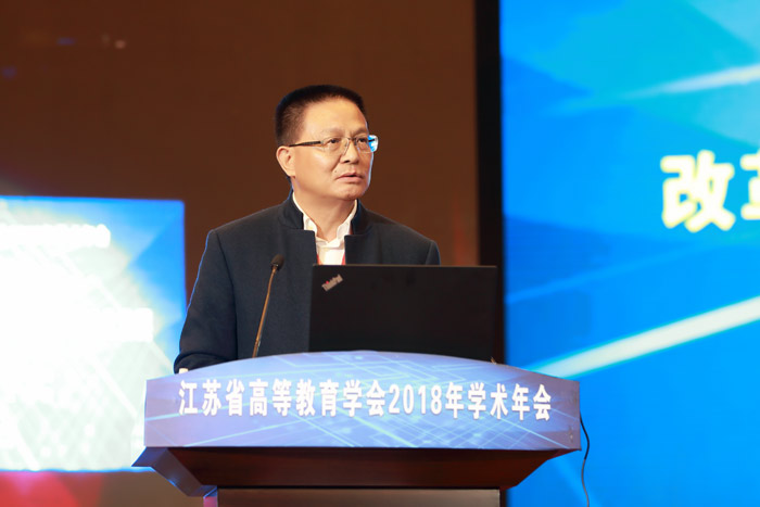 16日下午第二阶段举行学术报告环节,学会特邀教育部教育发展研究中心战略发展部主任马陆亭教授和江苏省高等教育学会学术委员会副主任、南京师范大学博士生导师胡建华教授进行学术报告,江苏省高等教育学会副会长、泰州学院校长兼党委副书记徐向明教授主持了特邀学术报告。马教授结合 教育工作大会精神,探讨了新时代大学的责任与发展。胡建华教授以新时代高等教育发展的“三个面向”破题,深入浅出、鞭辟入里。两位知名专家的报告引领了学术研究前沿、启发了理论研究和实践探索的灵感。