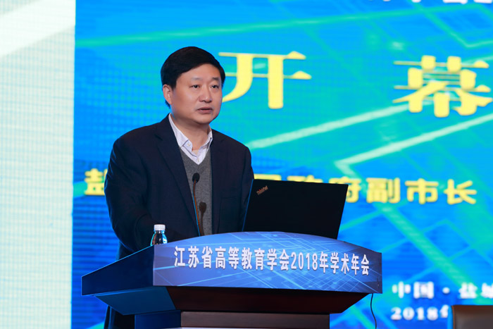盐城市副市长葛启发在致辞中表示,盐城提出了“高水平全面建成小康社会、高质量发展走在苏北苏中前列”的“两高”目标,“产业强市、生态立市、富民兴市”的“三市”战略和“开放沿海、接轨上海,绿色转型、绿色跨越”的“两海两绿”新路径,期待盐城工学院坚持走内涵式发展道路,聚焦盐城“三市”战略,聚力“两海两绿”发展新路径,继续推进产教融合,深化校地合作,助力推动盐城高质量发展。