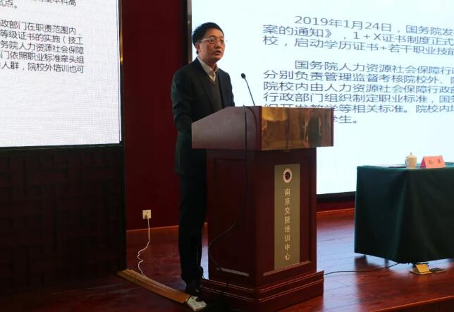 江苏省高等教育学会副会长王庆运主旨报告《国家1+X证书制度改革的政策背景》;