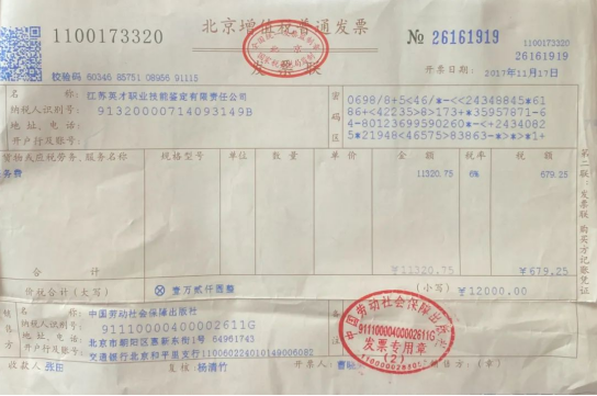 发票显示收款单位是中国劳动社会保障出版社有限公司